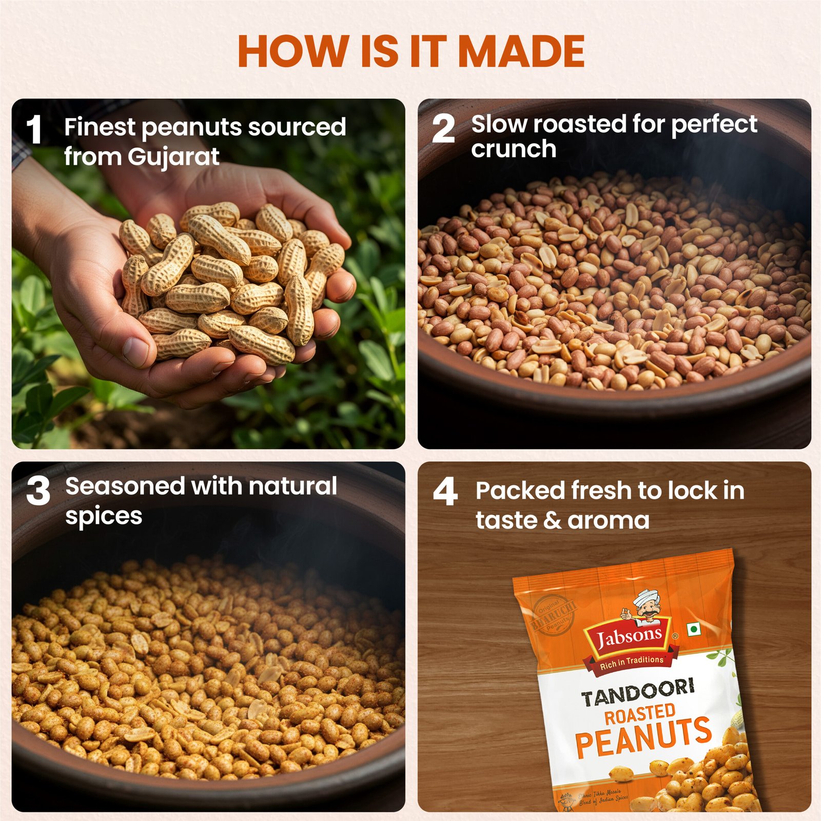 Traditional clay-roasted Bharuchi peanuts seasoned with traditional tandoori masala made up of aromatic spices with a smoky kick