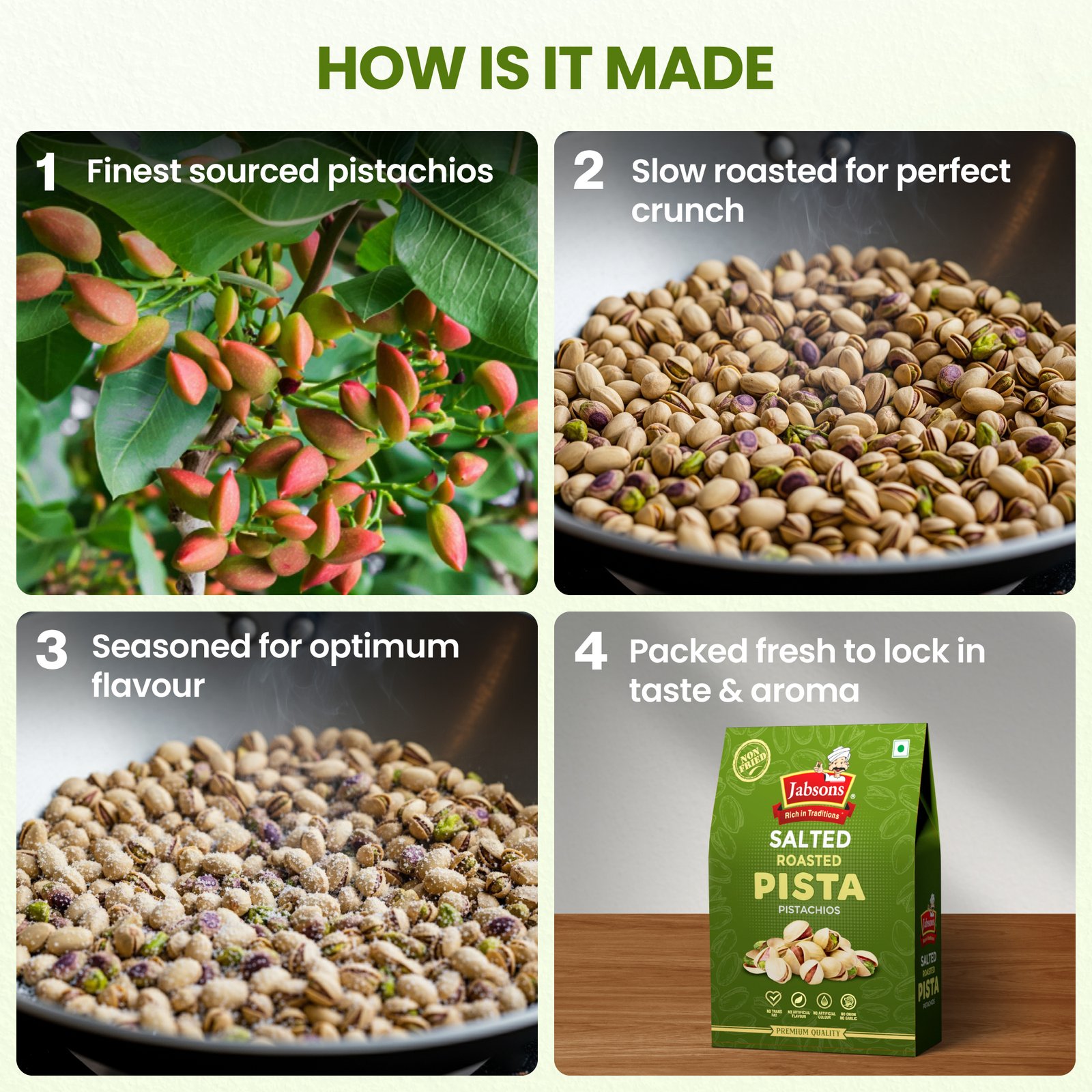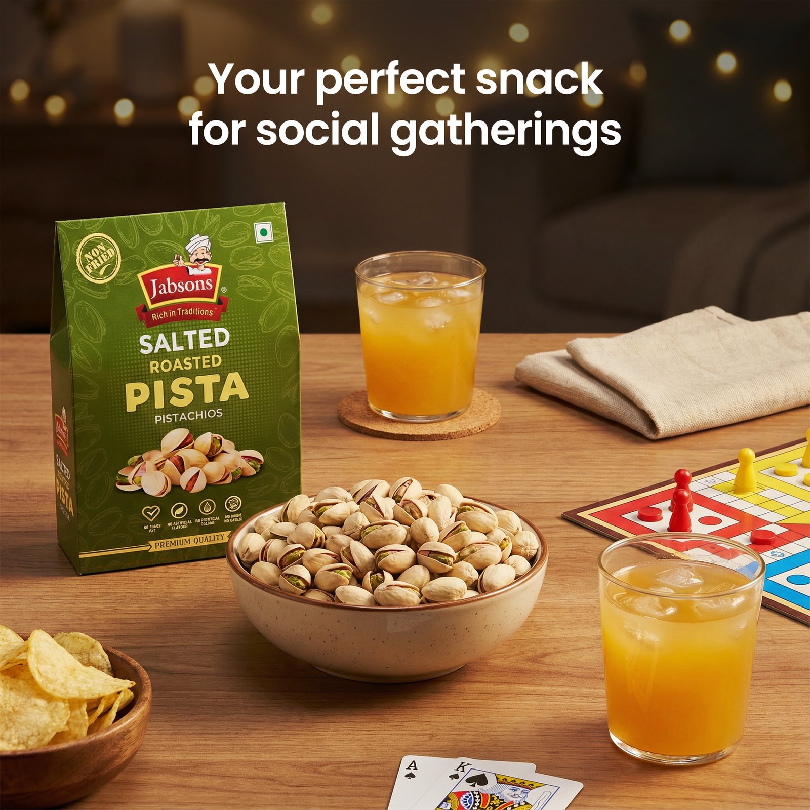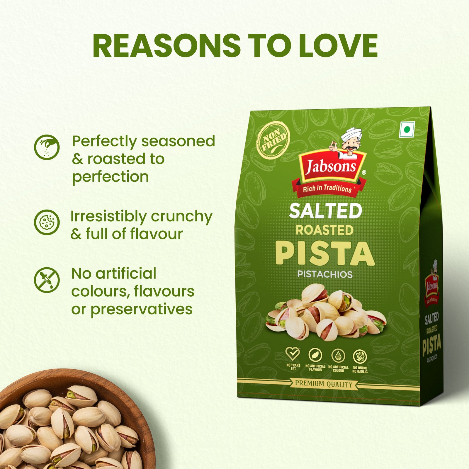 Premium roasted pista (pistachios) with a sprinkling of salt