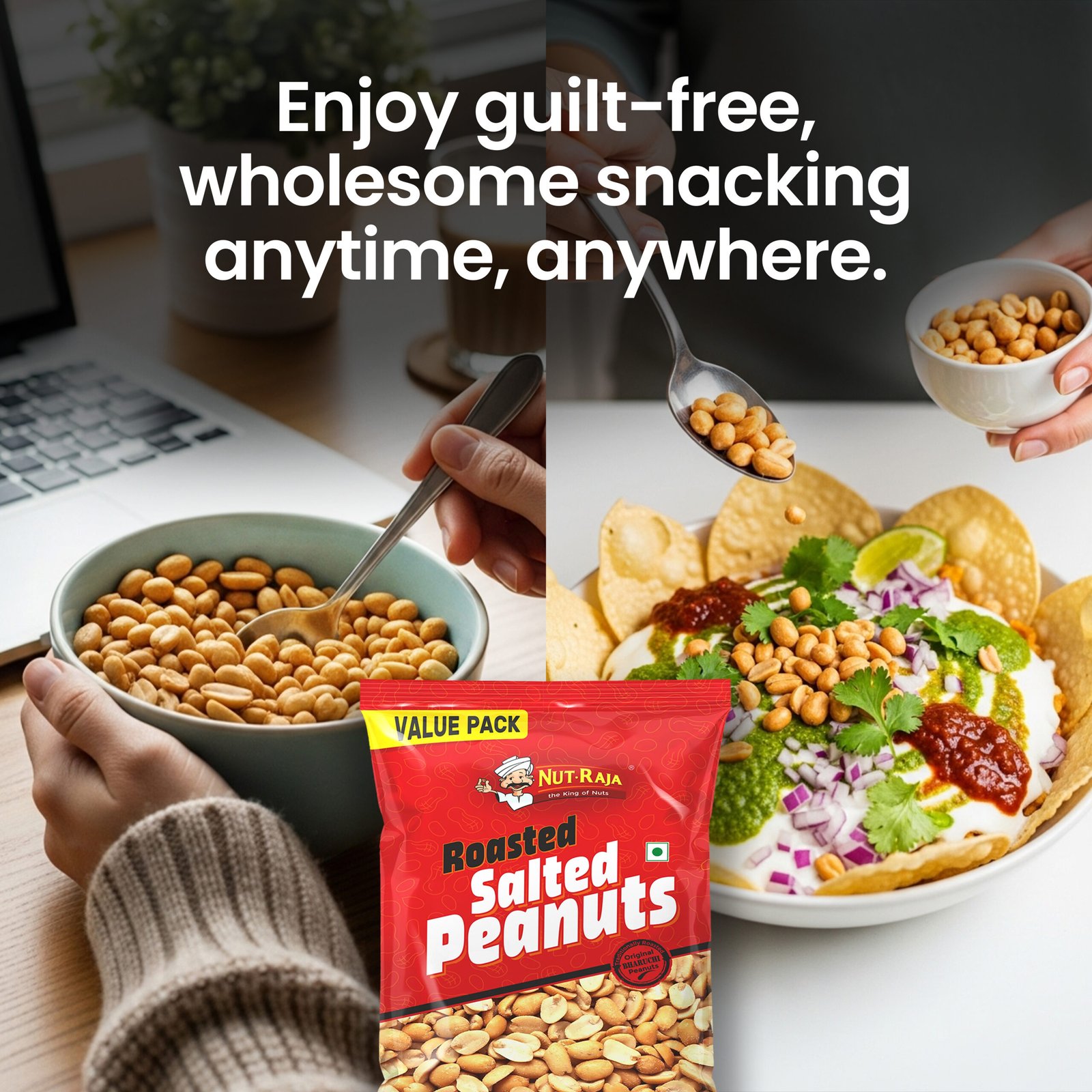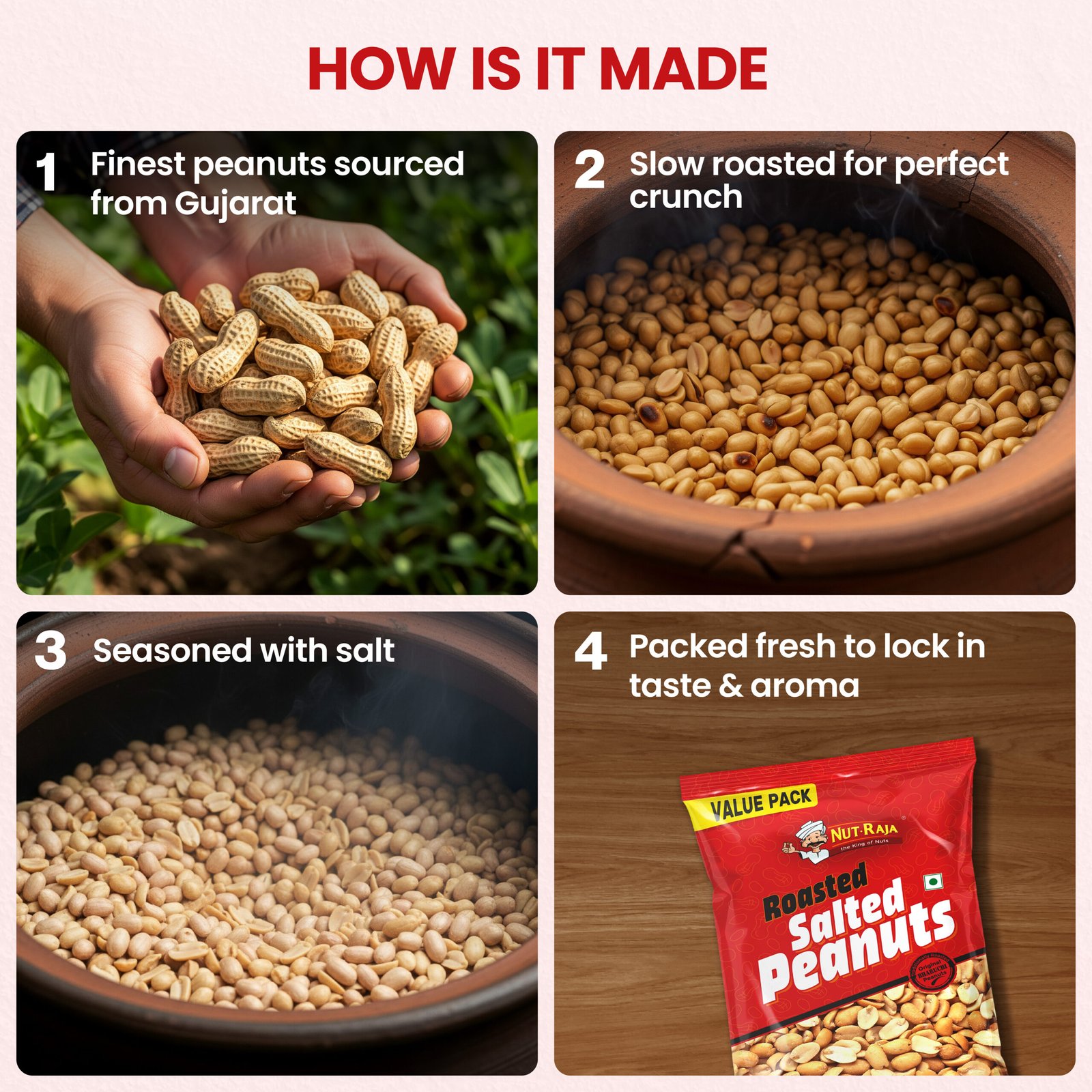 Traditional clay-roasted Bharuchi peanuts with a seasoning of blended salt (iodized and black salt)