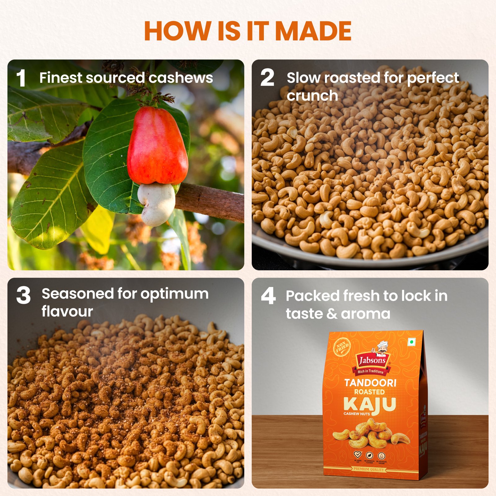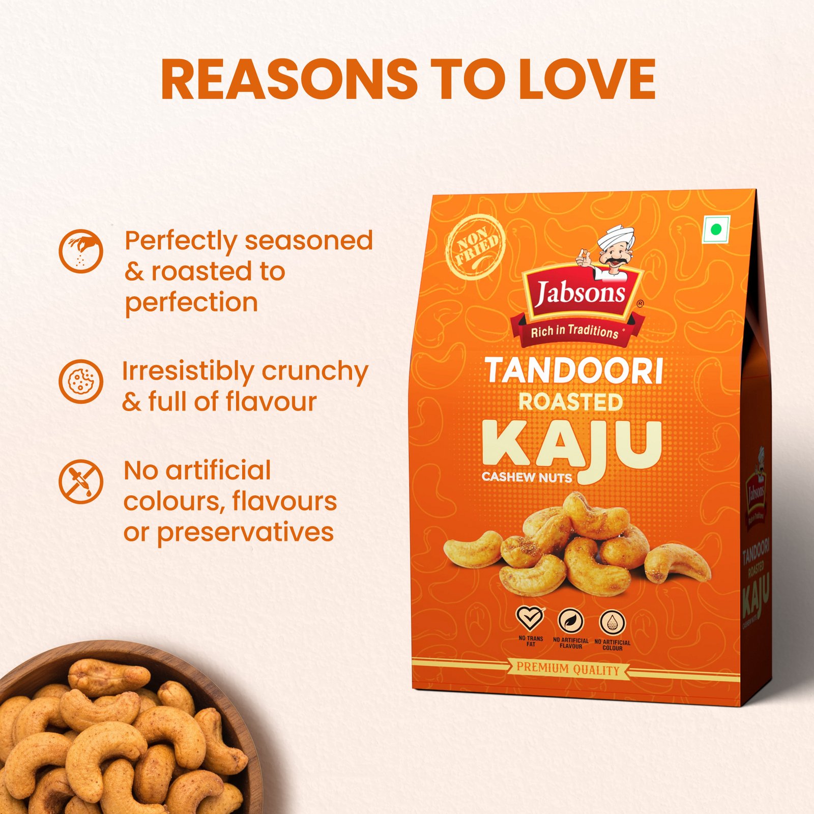 Premium roasted Kaju (cashews) with a seasoning of aromatic spices and a smoky kick
